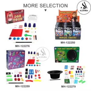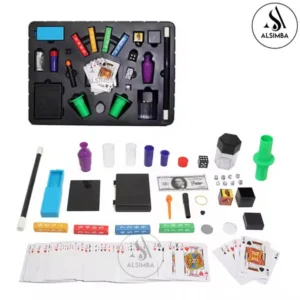 This kit By Alsimba – Pakistan No.1 Online Toys Store comes packed with a magician’s deck of cards, wand, levitation device, marked anti-gravity and invisible playing cards, a padlock with a key and chain, coin puzzles, crystal coin cases, fun gadgets like the endless water jug, spike-through-coin illusion, and others, all inside a sturdy, child-safe magic box built for continuous clamor.
