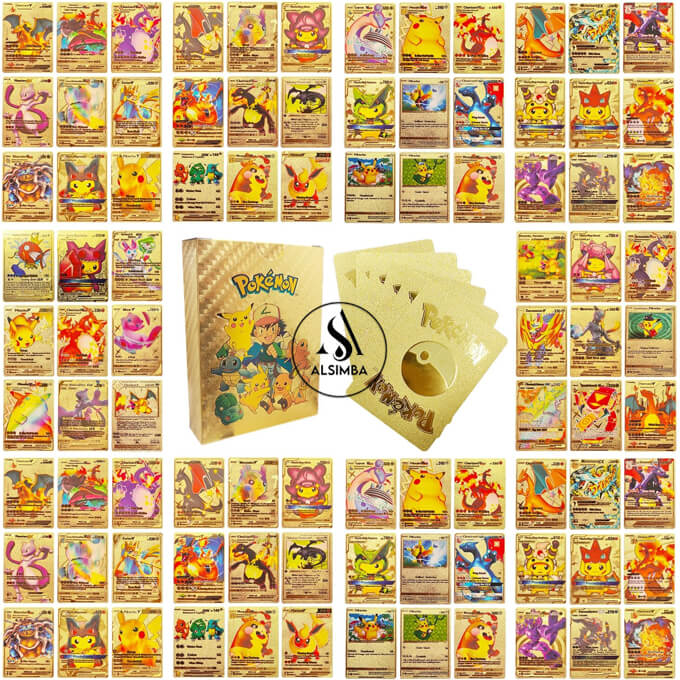 Each card in the 55 Pcs Pokemon Cards Gold Edition features a metallic gold finish to create a unique and luxurious look. Each card glimmers in the light to showcase the unique designs and special details of each Pokémon character. The cards provide a smooth, slightly embossed texture, which signifies superior quality. The set contains 55 unique cards, creating a never-ending fun experience for kids, collectors, or gameplays to battle, trade, or display.