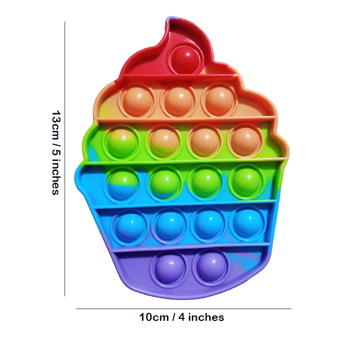 Alsimba Push Pop Bubble Squeeze Sensory Stress Relief Fidget Spinner Pop It Silicone Toy for Kids Children Adults – Approx. 5 inches – Ice Cream Popit stress & Anxiety Reducing Toy: Our push pop bubble fidget sensory toy can help restore the mood, home essentials, parent-child games, autism, games that the elderly, children, and adults can play.Easy to Operate: Just press the mouse bubbles down and they make a slight popping sound; then flip it over and start again! Endlessly reusable and washable, too.Play It Everywhere: There are no loose or noise-making pieces, making it great for playing in a car, bus, or plane, in a restaurant or at school. It’s also water-resistant, so you can play with it anywhere, even during bath time!Fidget Toy : Push Pop Bubble Fidget Sensory Toy Autism ,Special Needs Stress Reliever,Press and beat bubbles to relieve anxiety toys.Not for children under 3 years old play alone Players take turns to press as many mice as they want in a row. The player who presses the last mouse will lose. It exercises children’s thinking ability, which is very interesting. Bubble Popping! Stress reliever toy help restore the mood, home essentials, parent-child games, autism, games that the elderly, children, and adults can play. Silicone sensory toys are made of safe, non-toxic, odorless, environmentally friendly, soft, durable and high-quality silicone. Food-grade materials are safe for children. Popping fidget toys are durable, washable, reusable and portable. The colorful fidgets toy with pleasant bubble sound is a perfect gift for your child on birthdays, Eid and other ocassion presents. It is the best parent-child time and pop its fidget toy will be the best family games. The elderly, children and adults all can play. It is also an ideal choice and travel games to kill boredom during the trip. Bubble Popping pop it fidget toy, eliminating irritability bubbles is suitable for ADHD and autism. It helps children with high anxiety and OCD calm down and relieve anxiety. Cute Shape of Ice Cream The Popit Size Approx. 5 inches Complete Details Size Pic Attached Check Description.