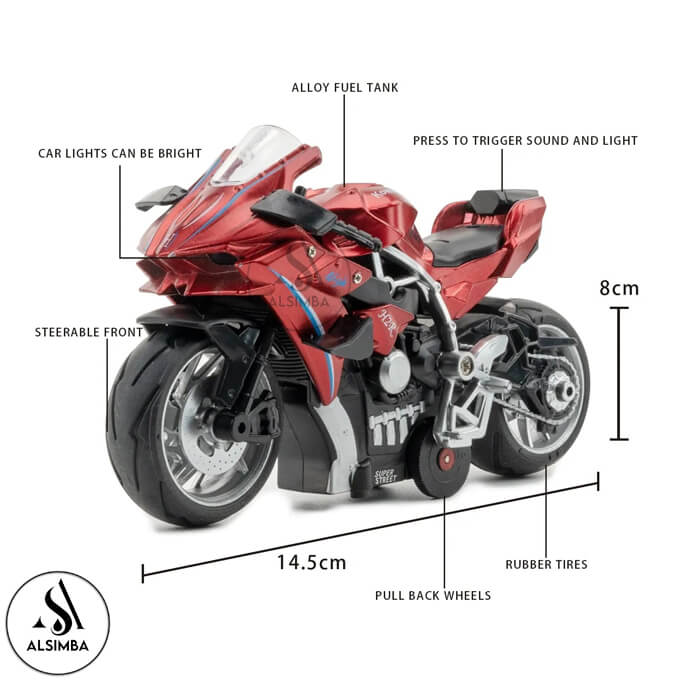 Whether you are a child who dreams of fast bikes and adventures, or a collector who dreams of realism and high-quality design, you will be sure to get maximum joy, fun, and thrills from this high-quality Kawasaki Ninja H2R diecast motorcycle Alsimba – Pakistan No.1 Online Toys Store.