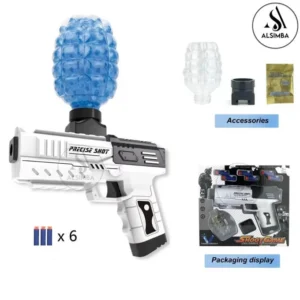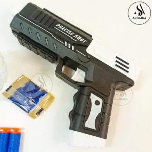 Precise Shot New Edition 2 in 1 Gel Blaster and Darts Manual Reload Toy Gun – Gel Ball Shooter and Nerf Darts Gun – Black By Alsimba Toys Experience precise shooting with this toy gun, fostering hand-eye coordination and aiming skills in an exciting play setting. Equipped with safe and soft foam darts, the Children’s Precise Shoot Gun ensures worry-free play without compromising on action-packed adventures. The toy gun is designed for convenience, making it easy for kids to load and reload foam darts for continuous shooting fun. Crafted with durability in mind, this toy gun can withstand the energetic play of young marksmen, ensuring long-lasting enjoyment. Set up targets or create imaginative scenarios for endless entertainment, encouraging active and imaginative play. The gun features an ergonomic and comfortable grip, allowing kids to hold and maneuver it with ease during intense shooting battles.