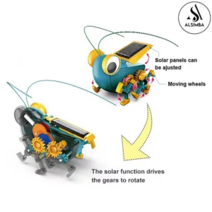 - The bug has moving legs (rolling wheels) and adjustable solar panel